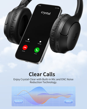 HS7 Bluetooth Headphones Over Ear, 60H Playtime Wireless Headphones with Microphone, ENC Call Noise Cancelling Mic, Foldable Wireless Headset, Deep Bass for Home Office Cellphone PC