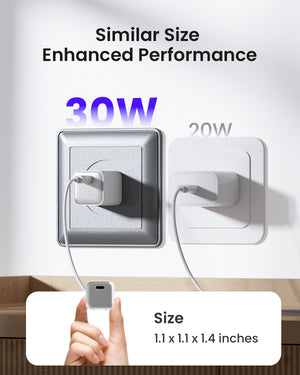 - 【Faster 30W Charger】 Provides full-speed 30W charging for iPhone 15/16 Pro and Pro Max, or charges iPad Air (5th generation) to 50% in just 40 minutes. Also Supports Samsung Galaxy Super Fast Charging (25W)