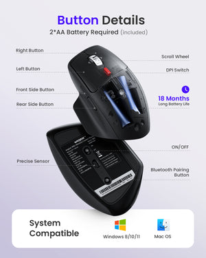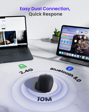 - Dual-mode Wireless Computer Mouse: Bluetooth mode is suitable for Windows8/10/11/MAC OS systems, and 2.4Ghz USB mode is suitable for laptops, desktops or any device with a USB-A port. Supports two connection methods at the same time, with a maximum connection distance of 10 meters.