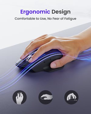MW1 Ergonomic Wireless Mouse, 2.4GHz with USB Receiver, Bluetooth 5.0, Computer Mouse for Laptop, Use on Any Surface, 3 Adjustable DPI, 6 Buttons, Compatible with Windows/macOS, Laptop, PC