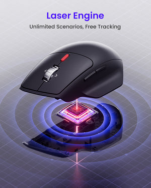 Laser Engine, No Limit to the Scene, Free to Use: Using the laser engine, it supports accurate control on any surface, and can even be tracked on a glass table.This efficiently designed wireless mouse also gives you up to 18 months of battery life (2*AA included). - 6 Efficient Buttons: Not only the left and right buttons, but also a DPI adjustment button, a scroll wheel and two side buttons. It is more convenient for users to surf the Internet and work.