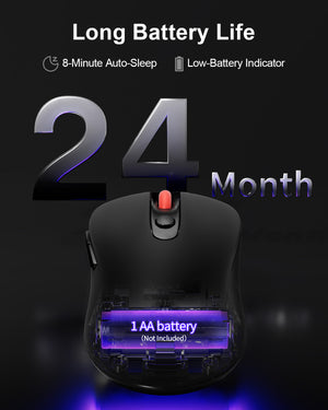 - 【24-Month Battery Life】Enjoy up to 24 months of use on a single AA battery (not included). The wireless mouse battery powered conserves energy by entering sleep mode after 8 minutes of inactivity and reactivates with any button click. A red light flashes to warn of low battery