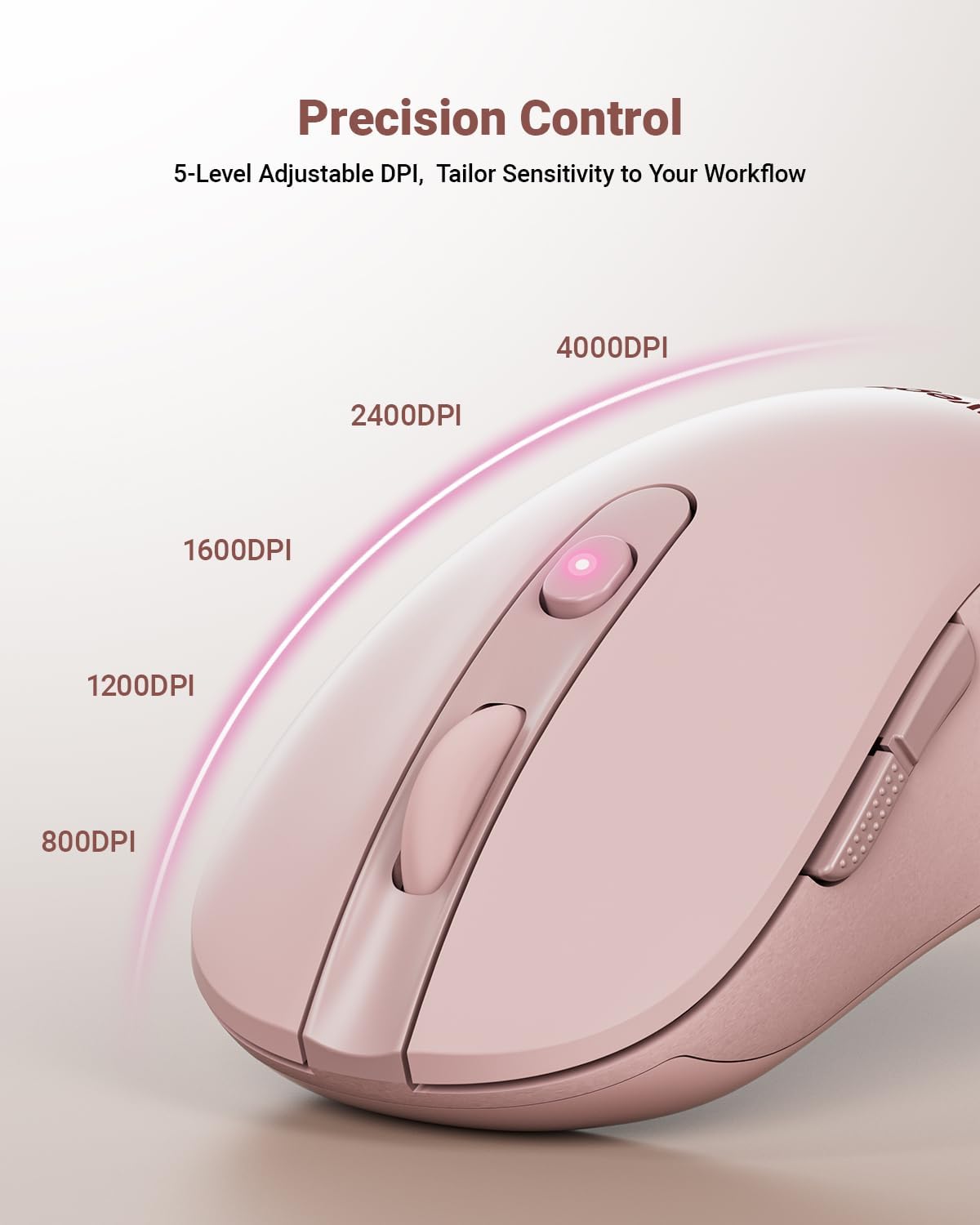 - 【Advanced Optical Tracking】Our wireless optical mouse features 5 adjustable DPI levels (800/1200/1600/2400/4000), giving you precise performance and smart cursor control across various surfaces. Now, customize it to fit your workflow