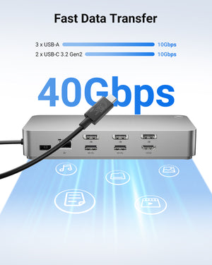 - Super Speed Data Transfer: The upstream USB-C 4.0 port provides lightning-fast 40 Gbps transfer speeds, and USB-A and USB-C have a maximum transfer speed of 10 Gbps, which lets your work efficiency reach a new level