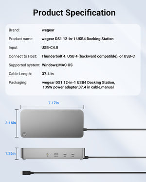 wegear Laptop Docking Station(12-in-1), for Thunderbolt 4, USB 4, or USB-C Systems, 92W Charging for Laptop, 40 Gbps Data Transfer, Single 8K, Quad 4K Display, Ethernet, Compatible with Windows, MacOS