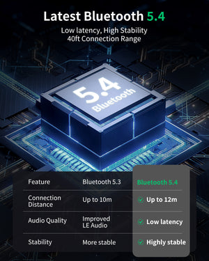 - [Latest Version Bluetooth 5.4] These wireless Bluetooth earphones with the latest Bluetooth 5.4 chip deliver a stable 40 ft connection range, low latency, providing smooth, uninterrupted listening. It also offers improved range and lower power consumption, enabling you to enjoy longer playtime on a single charge.