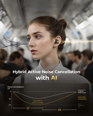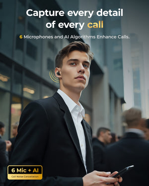 - [Hybrid Active Noise Cancellation Earbuds] Enjoy clear conversations with the Bluetooth earbuds equipped with 6 microphones and advanced hybrid active noise cancellation. This technology effectively minimizes background sounds, ensuring your voice remains clear and prominent, even in noisy environments.